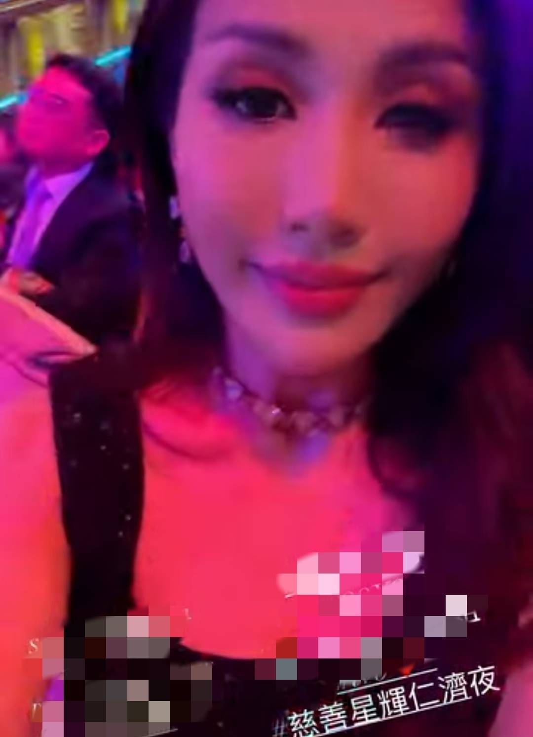 还有,何超盈此次参加慈善夜,坐着的时候有一张无修图,能看出她的脸是比较大的,脖子前倾,嘴角有皱纹,下巴没那么尖,这是她的真实状况吧。